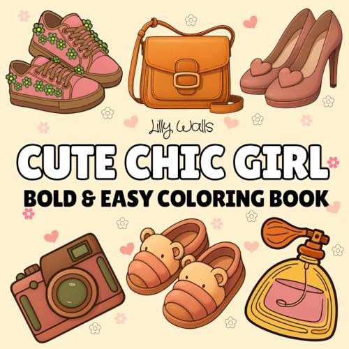 Cute Chic Girl: Bold and Easy Coloring Book for Adults and Kids, Simple and Big Designs for Relaxation Featuring Lovely Accessories, Food & Fragrances