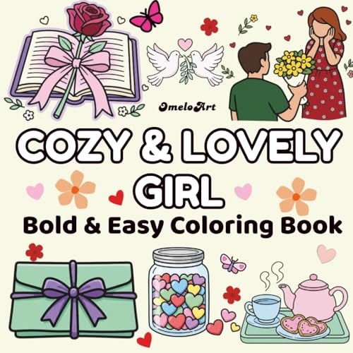 Cozy & Lovely Girl: Bold & Easy Coloring Book for Adults and Teens | Cute Cozy Objects, Romantic Gifts, Tea Time, Letters, Flower: 50+ Adorable Heart, ... for Teen Girls and Women Who Love Romance