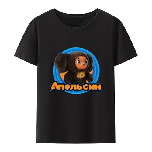 Lady Russian Cartoon Cheburashka Lovely Modal T Shirt Boy Girl Summer Trendy Russia Style Black White Casual Streetwear Tops black M
