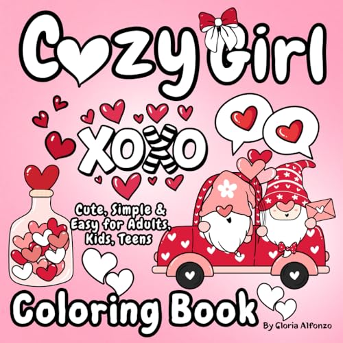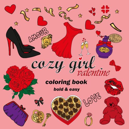 Cozy Girl Coloring Book: Simple, Cute for Adults, Kids, Teens Featuring Lovely Matched/ Valentine's Day Inspired Designs/ Perfect for Stress Relief/ Bold & Easy Images Love