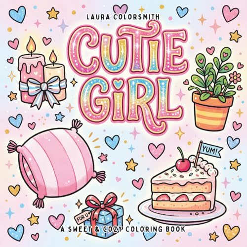 Cutie Girl - A Sweet & Cozy Coloring Book: Coloring Book for Girls, Bold and Easy Designs for Relaxation Featuring Sweet and Lovely Things