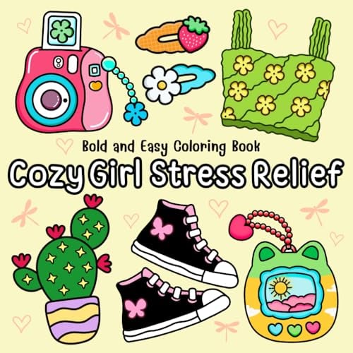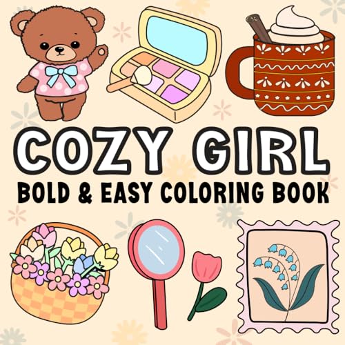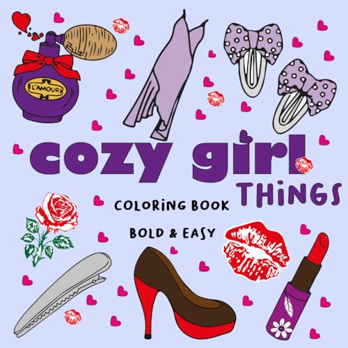 Cozy Girl Stress Relief Bold and Easy Coloring Book: Relax and Unwind with Big, Simple, and Cute Designs. Featuring Lovely Things, Cosmetics, Flowers, ... Clothes, and More for Kids, Teens, and Adults