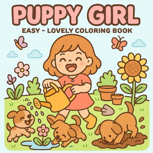 Puppy Girl: Easy - Lovely Coloring Book, Girls & Dogs Wholesome Scenes of a Girl and Her Pup, for Kids Teens Adults
