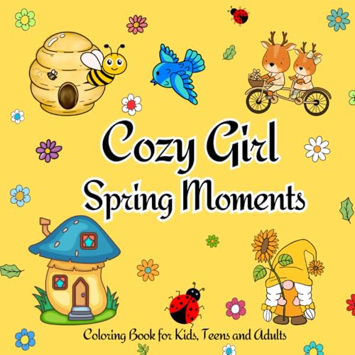 Cozy Girl Spring Moments Coloring Book: Spring Coloring Book for Adults, Kids and Teens Featuring Lovely Garden Scenes, Cute Fairies, Plants, Flowers and Animals
