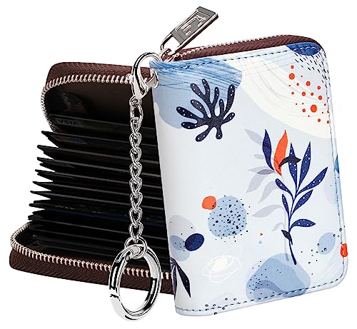 FurArt Plånbok med dragkedja för kvinnor, RFID-blockerande kreditkortsplånbok, visitkortshållare, kompakt storlek nyckelringsplånbok, Lövverk, small, Klassisk