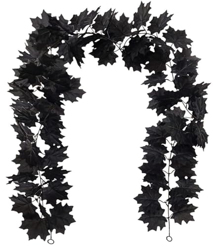 6 fot halloween konstgjord höst lönnlöv girlang höst falska löv klätterväxt konstgjord lövverk girlang inomhus utomhus dekor för hem trädgård bröllopsfest (svart)