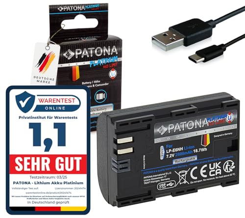 PATONA Platinum LP-E6P LP-E6NH USB-batteri (2 600 mAh/4 A) med direkt ingång (USB-c) artikel 1361 kompatibel med R5 II etc.