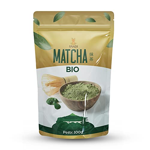 Snadi - Ekologiskt Matcha Grönt Te Pulver från Japan | 100 gram | Premium Kvalitet | Stenmalet | Högt i L-teanin och Antioxidanter | Lätt att Förbereda | Miljövänlig