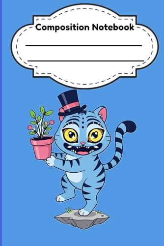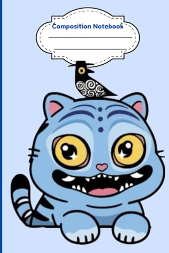 Composition Notebook: K-Pop Derpy Tiger – Blue Neon Lucky Cat Notebook – Wide Ruled Pages for Teens, Students, Fans, and Study Notes – 6 x 9