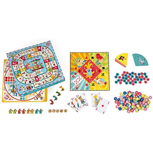 Janod - Carrousel Multi-Games Box Set - Classic Family Games - Draughts game, Ludo, Yellow Dwarf, 7 families, Goose game - For children from the Age of 5, J02742