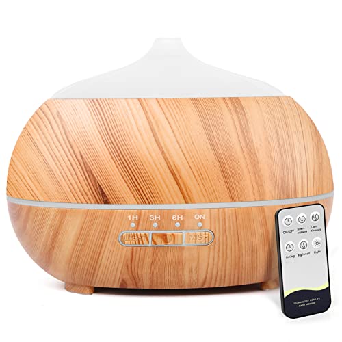 Eterisk oljediffusor för ultraljudsluftfuktare: Aromaterapi oljediffusor 500 ml med fjärrkontroll elektrisk luftfuktare aromaterapi oljediffusor i trä