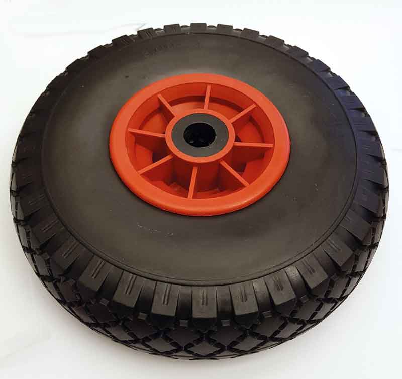 Luftgummihjul plåtfälg, 4.10/3.50-4 (260x85mm), 2 glidlager, 20/88mm,