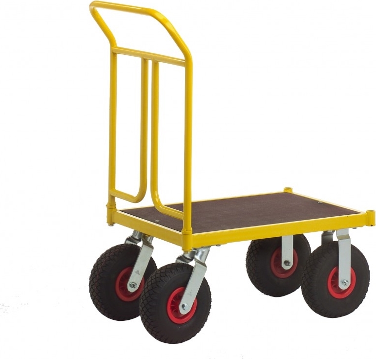Kongamek Plattformsvagn 836x500x1090mm 400kg, Gul, Luftgummihjul, 2 fast 2 länk