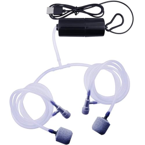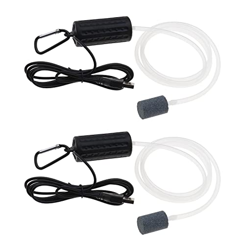 Young Wolf Uppsättning av 2 akvarium luftpump supertyst mini USB akvarium syre luftpump luftluftluftluftluftare pump energibesparande syrebubbla med luftsten och ett utlopp silikonrör 1 W
