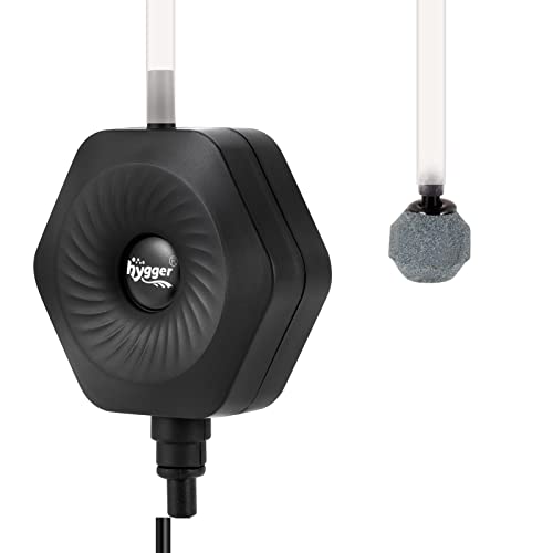 hygger syrepump för akvarium, mycket tyst akvarium, luftpump, buller lägre än 33 db, 1,5 W, kraftfull syrepump 420 ml/m, lämplig för fiskbassänger och nanoakvarier