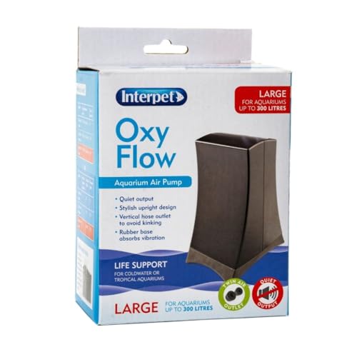 Interpet Oxy Flow luftpump, för akvarium fisktankar, tyst utgång, kompakt design, anti-vibration gummibas, stor, för akvarier upp till 300 liter/66 gallon