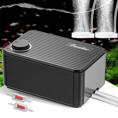 Boadw Tyst luftpump för akvarium, 2,3 W, justerbar akvarium syrepump upp till 400 liter med alla tillbehör < 30 dB