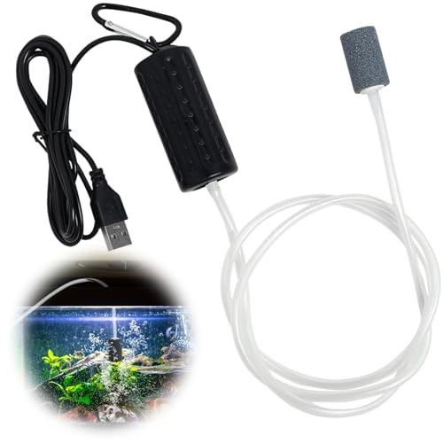 Mini akvarium luftpump USB akvarium syre luftpump ultratyst luftluftluftluftare pump energibesparande syrebubbla bärbar akvarium bubbla med luftsten enkelt utlopp silikonrör och karbinhake (1 W)