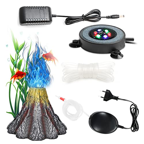 Akvarium bubbla ljus med Luftpump, Vattentät IP68 Vulkanisk sten Akvarium Dekorationssats Dyk Belysning med 6 RGB LED lampa för Akvarium Syresättande