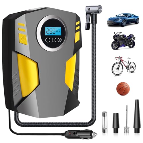 PQETBV Inflator bärbara digitala bildäck, 12 V snabb elektrisk luftpump, uppblåsare bildäck med digital display och LED-ljus, för bil, cykel, motorcykel, ballong (gul)