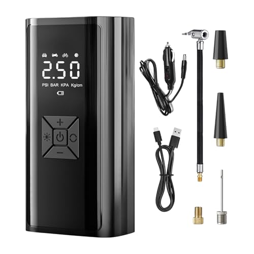 Syncwire Handhållen luftkompressor - 10,35 bar snabb luftpump uppblåsningspump däck bilinflator för bil, cyklar, motorcyklar, bollar, med däckventilpluggar, stor LCD