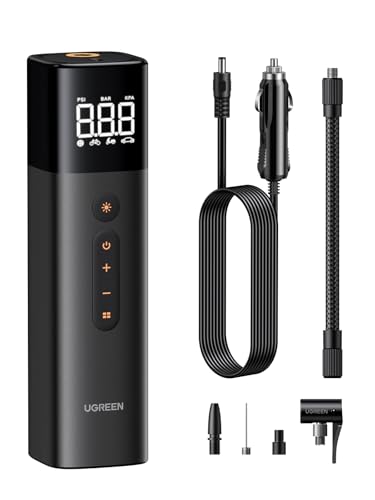 UGREEN Luftpump (0,2-10,3 bar / 3-150 psi) Elektrisk kompressor Bärbar cykelpump Minidäckpump med digital LED-display LED-lampa för alla cyklar, motorcyklar och bilar