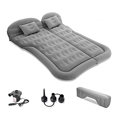 Förbättrad förtjockad uppblåsbar madrass, SUV-luftmadrass, bärbar luftsäng för SUV, MPV, bilar och lastbilar, hem, utomhus, camping, universell (GREY)