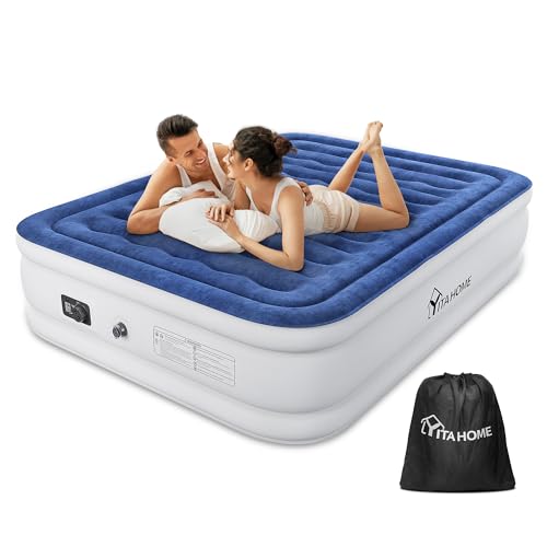 YITAHOME 2 x 1,5 m luftmadrass självuppblåsande med integrerad elektrisk pump, luftsäng, självuppblåsande på 3 minuter, uppblåsbar madrass för 2 personer för hem, gästrum, vit/blå