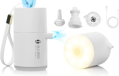 Elektrisk luftpump, minipump, bärbar luftpump med 1,300 mAh batteri, USB-uppladdningsbar, för att blåsa upp & tömma, mini luftpump med campinglampa för luftsäng, luftmadrass, simring, vakuumförvaringspåsar