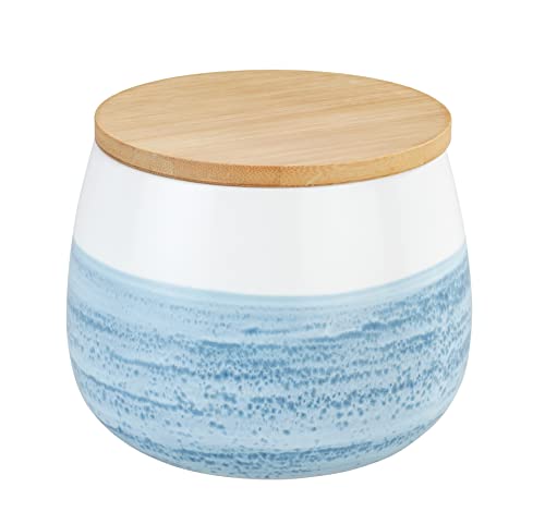 Förvaringsburk Mala 0,7 L, högkvalitativ keramisk burk i vitt med akvarelldekor i blått, FSC®-certifierat bambulock med silikonring för lufttät förvaring, Ø 13 x 10,5 cm
