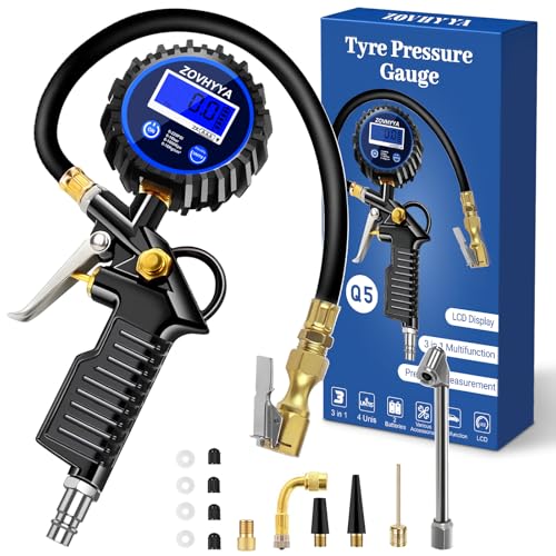 ZOVHYYA Däcktrycksmätare Lufttrycksmätare Däcktrycksmätare 220PSI LCD Fyra Måttenheter 14 Tillbehör Lämpliga för Fordon Basket Simrunda