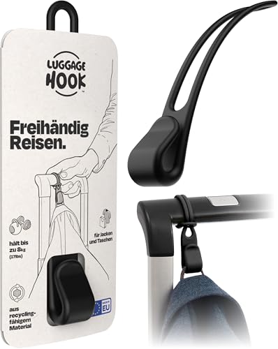 Luggage Hook Det travel essential håller jackor och väskor upp till 8 kg, bagagekrok med en hand, ett måste resa tillbehör flygplan för den som flyger ofta, resa tillbehör för flyghandbagage (svart)