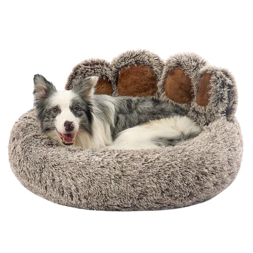 Jiupety Rund husdjurssäng med tassform, lugnande munkformad hundbädd för medium hund, fuskpäls kattbädd för stor katt, bekväm och mjuk, maskintvättbar, X-Large storlek (81 x 80 cm (32 tum x 81 tum),