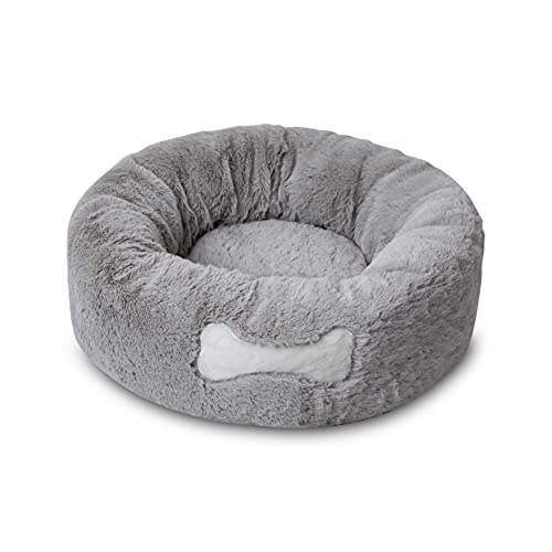 Sleepdown Shaggy rund plysch hund katt lugnande supermjuk munksäng, halkfri botten, maskintvättbar - liten (40 cm x 40 cm x 18 cm) - kolgrå
