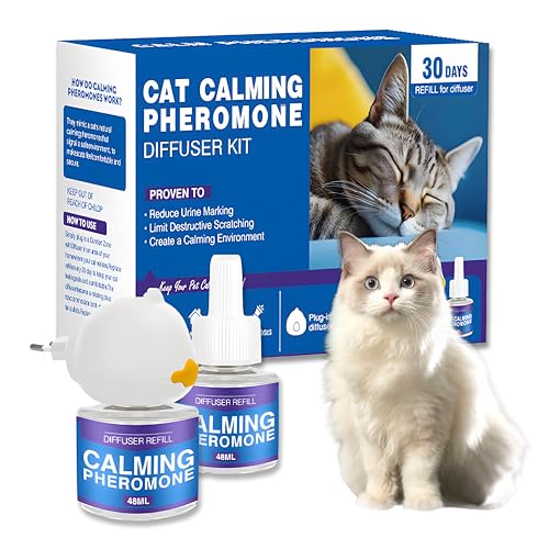 SilverChry Feromoner katt diffuser kit 2 st, katt lugnande medel, katt doftplugg, feromoner kattuttag 48 ml – för rulliga katter lugnande, reducerad markering, repor, gömma