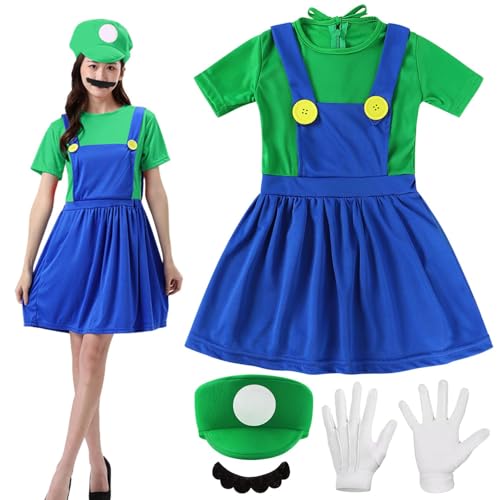 Shengruili Luigi kostym-set, Luigi-kostym, Bros cosplay-kostym, damoutfit för jul, karneval, maskeraddräkt