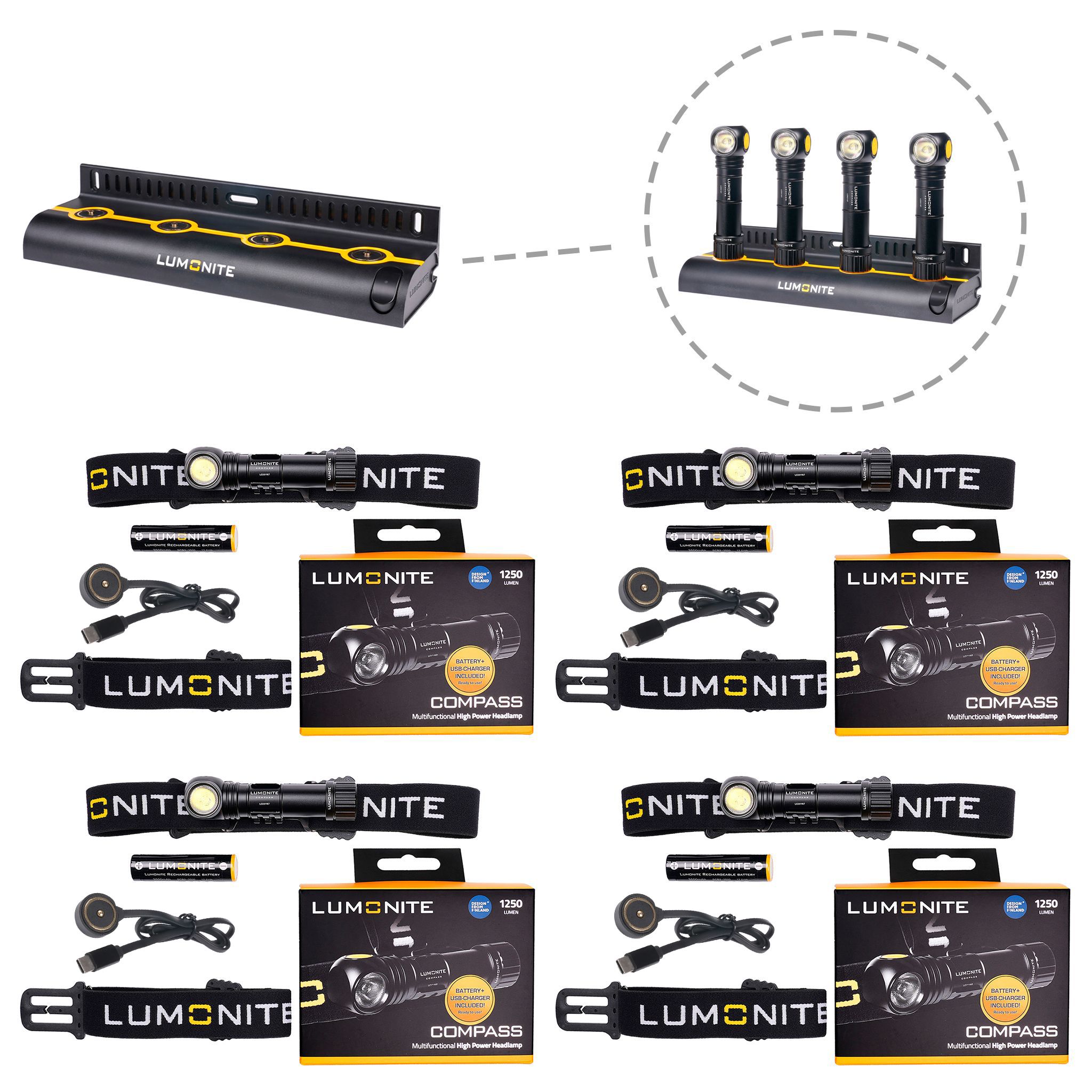 Pannlampa LUMONITE Compass - 1250 lm / Laddbar, 4 st Grundpaket + Laddningsstation