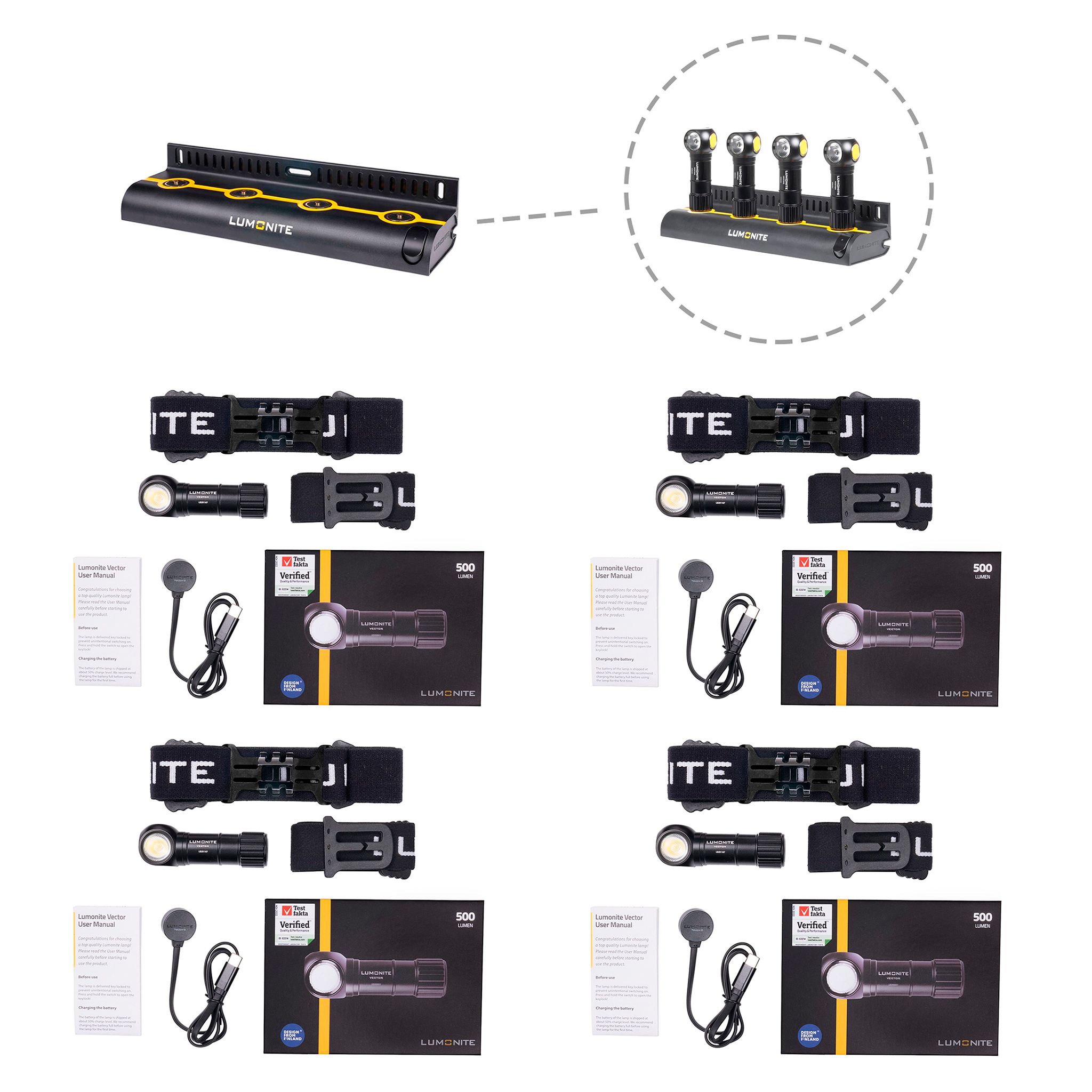 Pannlampa LUMONITE Vector V2 - 500 lm / Laddbar, 4 x Grundpaket + Laddstation