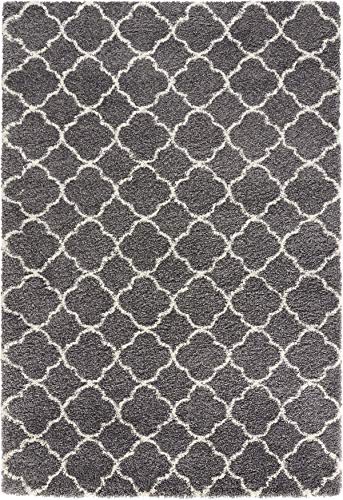 Mint Rugs hög-flor matta Luna mjuk fluffig geometriskt mönster (160 x 230 cm, 100% polypropylen, golvvärme lämplig robust), grå kräm