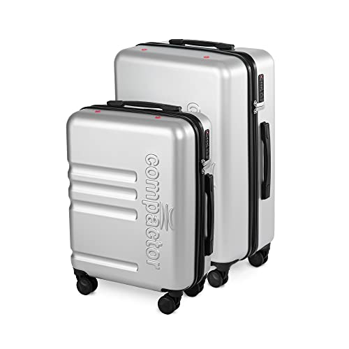 Compactor 4-hjuls hårt skal vattentålig resväska med bärhandtag och avtagbar rem, SILVER, SMALL + LARGE, Luna
