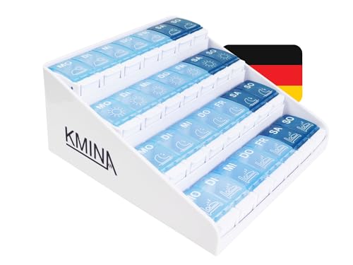 KMINA – tablett låda 7 dagar, 4 fack, stor, tysk, morgon lunch på kvällen, medicinlåda, patenterad