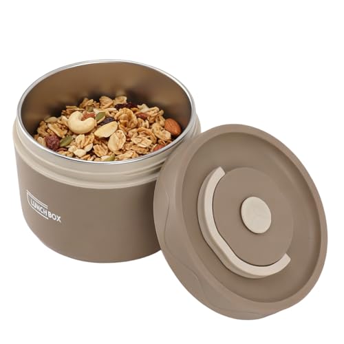 Mat termo, 304 rostfritt stål dubbelskikt soppbehållare bärbar rund form lunch mat burk bred mun Bentoss låda 550 ml för arbete, skola, utomhusmiddagar (Isolering-coffee)