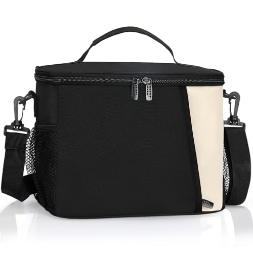 HOMESPON Isolerad lunchväska för kvinnor vuxna arbete damer män cool väska lunchlåda behållare tygväskor för skola picknick eller resor (svart sidofickor)