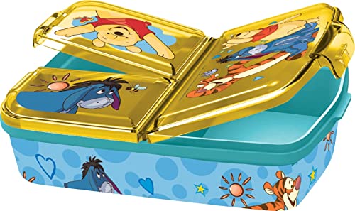 p:os Nalle Puh lunchlåda för barn med 3 fack, lunchlåda i plast med klämstängning, lunchlåda för barnkammare, skola och fritid