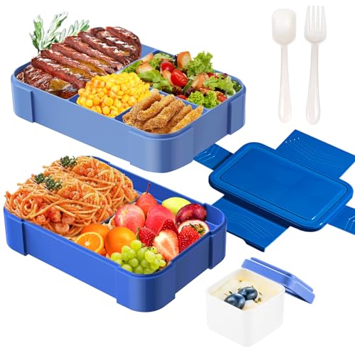 MUJUZE Lunchlåda med delade fack, lunchlåda vuxen/barn, hållbar, läckagesäker, diskmaskinssäker, salladslunchlåda, barnkammare bentolåda för skola, arbete, picknick resor (Blue)