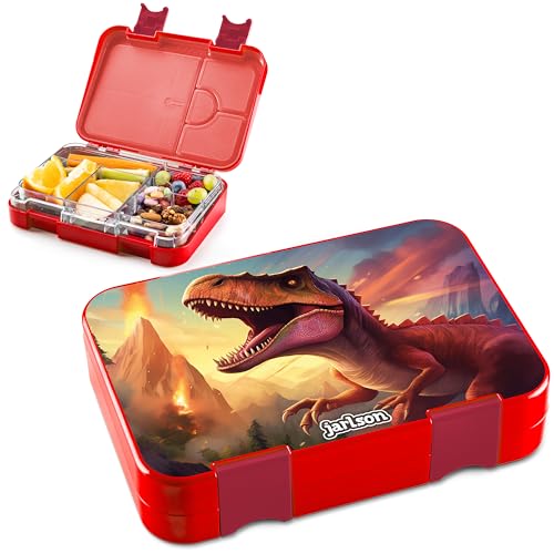Jarlson® Lunchlåda för barn med fack – TONI lunchlåda – bentolåda läckagesäker – matlåda för dagis och skola – flickor och pojkar | Vesperbox | Snackslåda (DINOSAURIER 2.0)