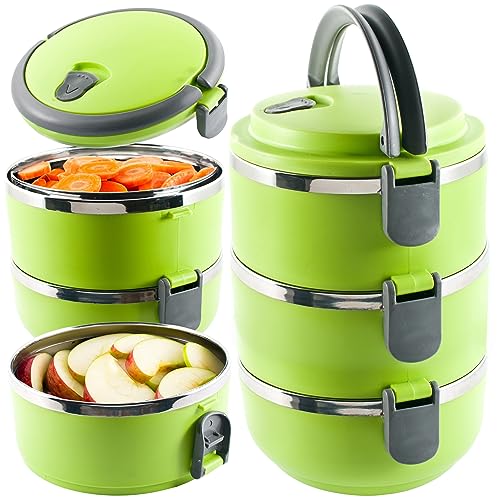 Retoo Termisk Lunchlåda Bärbar behållare Matbehållare i rostfritt stål 3-lagers Lunchbehållare Isolerad matbehållare Stapelbar läcksäker Lunchlåda för vuxna Barn Grön