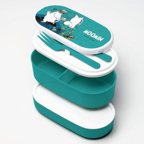 Puckator Moomin staplad bentolåda – lunchlåda för vuxna, barn, med fack och gaffel och sked – snackslåda, matbehållare med lock, mellanmålsburkar