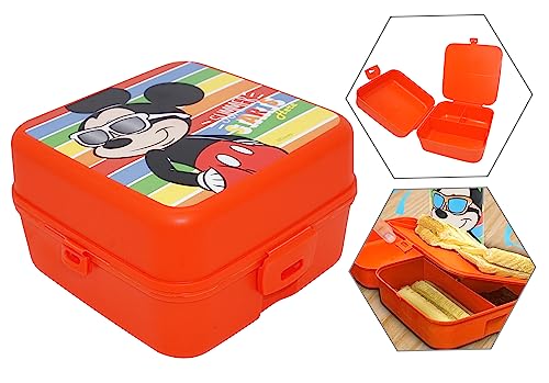 HOVUK Musse Pigg lunchlåda för barn 13 cm | 3 fack lunchbehållare med klicklås, livsmedelssäker snackslåda för skola eller resor 3 + år