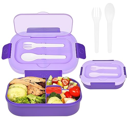 AUAUY Bento-lunchlåda, 1 300 ml lunchlåda för barn vuxna, läckagesäkra Bento lådor med 4 fack och sked och gaffel, mikrovågsugn/diskmaskinsäker, BPA-fri, barnlunchlåda för skola förskola – lila